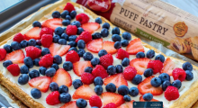 - In a bowl, beat cream cheese, butter and vanilla until smooth. Add confectioners' sugar, lemon zest and lemon juice, mixing until completely combined. Spoon and spread onto cooled puff pastry. Top with berries and serve.