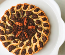 - Have a small dish of water handy for the assembly. Working one at a time, place a small half tsp. of dough into the center of the round. Use your fingers to moisten the outside edge of the dough circle. Pinch two ends of the circle together to form an eye-shaped "pie" with top open. Place inside a nonstick cake pan. Repeat, snuggling each piece in next to the other all along the outside perimeter.