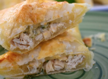 Golden brown puff pastry stuffed with creamy garlic and herb Swiss cheese with chicken is a fantastic meal, but also wonderful for parties and potlucks, too.
