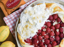 - Gently roll out the Wewalka Pie Crust on a cookie sheet, leaving the included parchment underneath. Using a slotted spoon, scoop out the berries onto the pie crust about 1½ inches from the edges, leaving the juices behind in the bowl. Gently fold the edges of the pie crust, overlapping the raspberries a little, crimping around as you go.