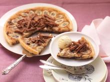 3. Distribute the grated chocolate on the pastry. Peel the bananas and cut into thick diagonal slices, approx. 1/2 in. thick. Spread the banana slices evenly over the pastry.