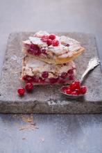 These squares are beautiful and fresh. Almonds and currants combine to create a yummy treat.
