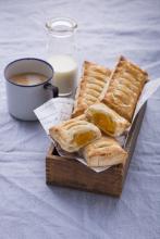 2. Spread half the puff pastry rectangles with mango jam, leaving about a 1/3 in. margin around the edges. Place remaining puff pastry rectangles on top of the rectangles with jam and press the edges firmly together.
