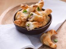 4. Coat the crescents with egg wash and bake in the oven for approx. 12-15 minutes or until browned and nicely puffed. Serve warm.